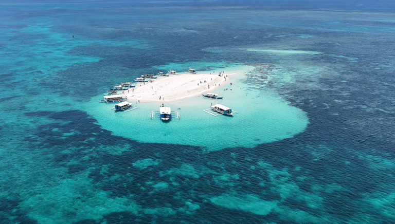 Venture out to Bucas Grande to swim with stingless jellyfish, explore limestone caves, and glide through luminous blue waters.