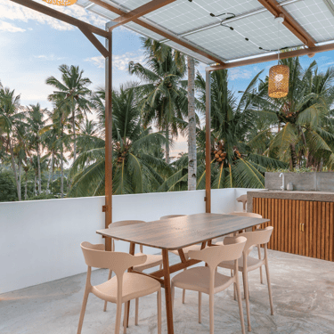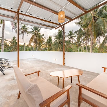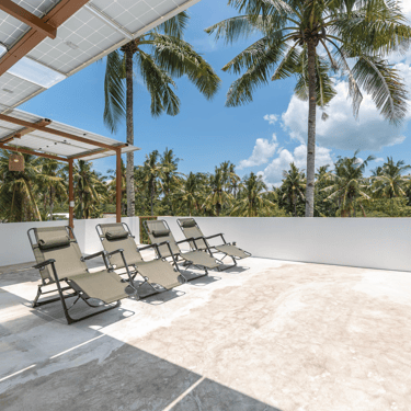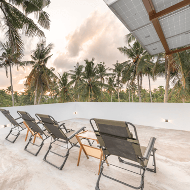 La Luna Villa is a fully solar-powered, eco-boutique 3-bedroom villa spanning 322 m² over three levels, nestled in a coconut grove in Catangnan, Siargao. Thoughtfully designed for sustainable living and authentic island hospitality, we’re just minutes from the legendary Cloud 9 surf.