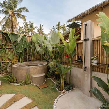 3 bedrooms, 2 full bathrooms + 1 toilet, 2 outdoor showers & a private plunge pool