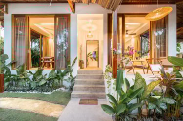 Discover our three uniquely styled rooms (Mayari, Hanan, and Tala) each with its own charm and island views. Choose a private room in our co-living villa, or enjoy full exclusivity by booking the entire property. Every space at La Luna Villa is crafted for comfort, sustainability, and authentic island living.